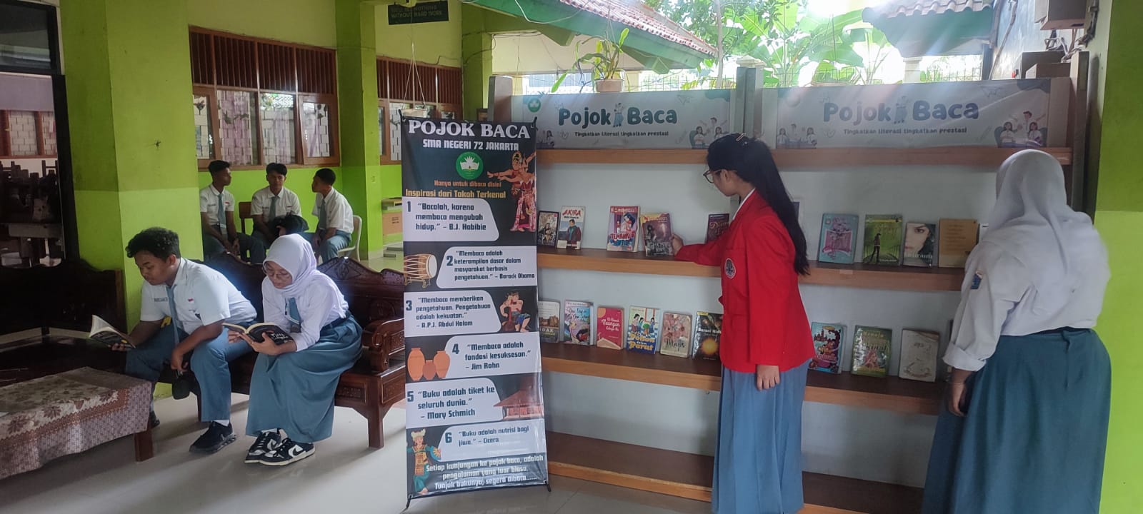 Perpustakaan SMA Negeri 72, merupakan salah satu fasilitas pendukung utama dalam kegiatan pembelajaran di sekolah. Terletak di “lantai dua” perpustakaan ini dirancang untuk menciptakan lingkungan yang nyaman, tenang, dan kondusif bagi siswa dalam mengembangkan minat baca serta memperluas wawasan akademik.